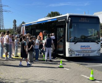 Während die Klassen 6 bis 10 auf Wanderschaft sind, erhalten die neuen Schülerinnen und Schüler der RSE einen Einblick in die Verkehrssicherheit an...