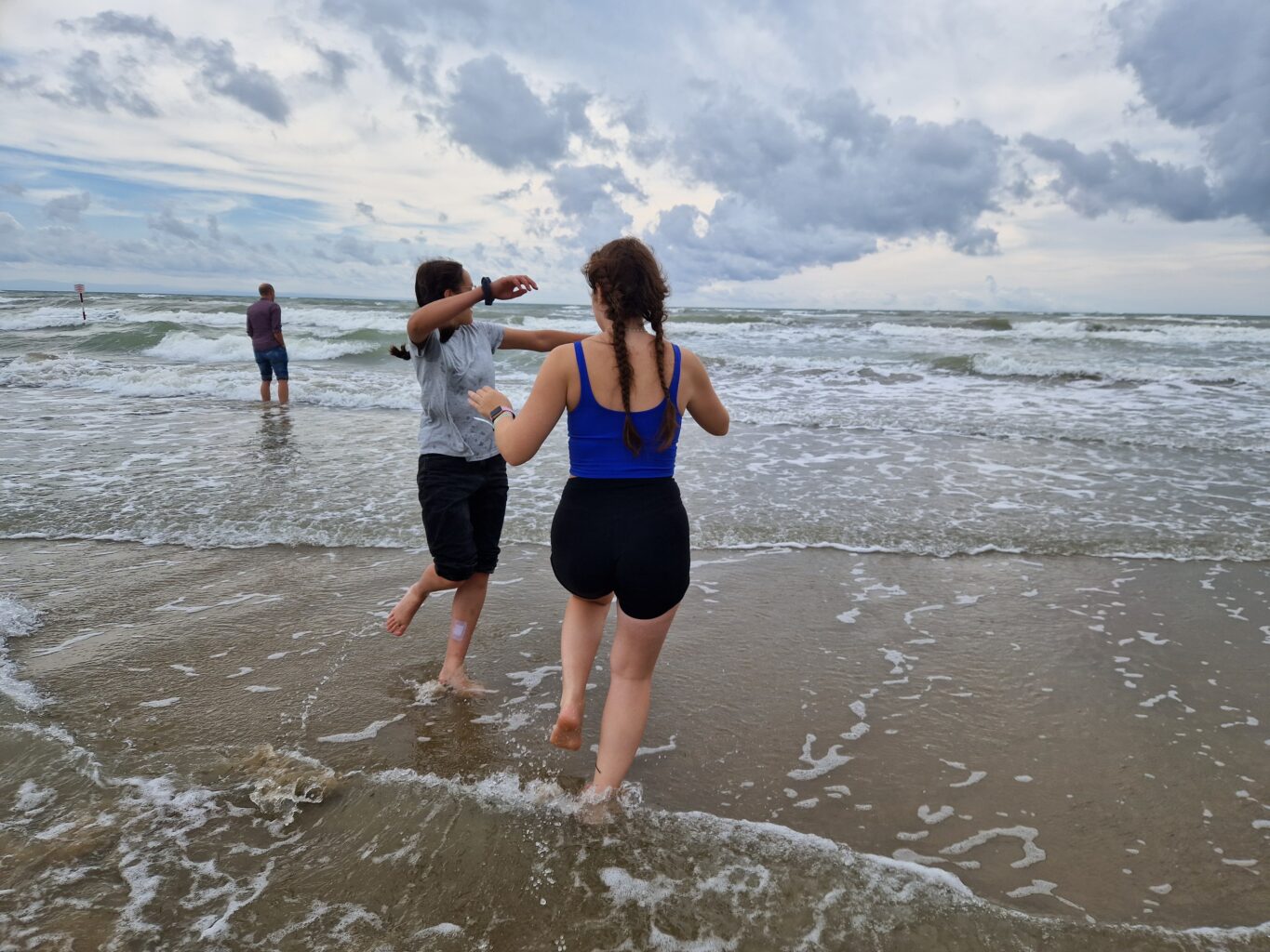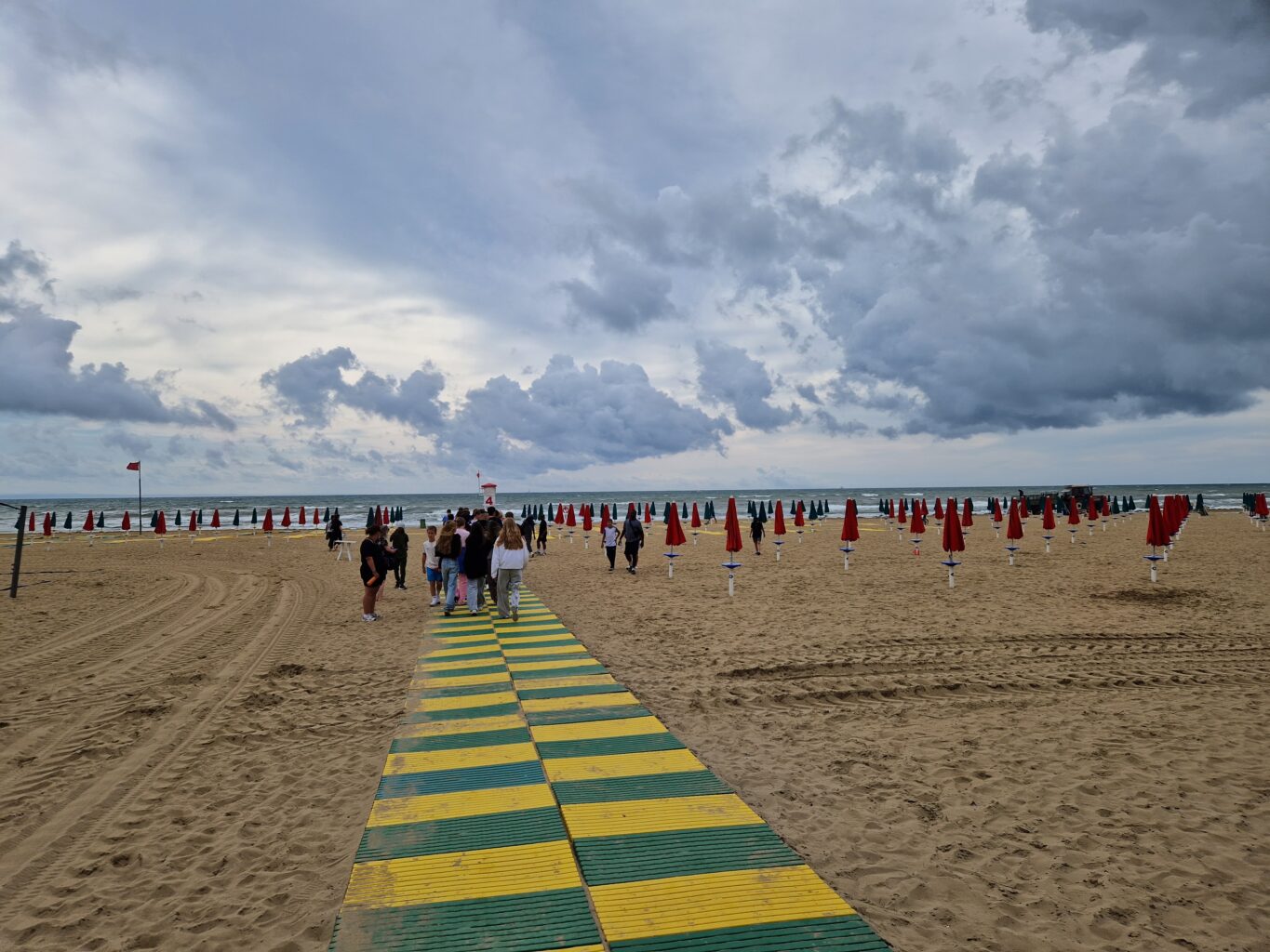 Kaum waren die Sommerferien vorbei, hieß es für zwei 10. Klassen wieder „ab in den Süden“. Am 21. September, einem Sonntagabend, trafen sich die Klassen 10a und 10c bei strömendem Regen, um sich die Nacht in einem Reisebus um die Ohren zu schlagen. Nach dem Aufwachen wurden alle mit einer spektakulären Aussicht belohnt: am Fuß der Alpen tat sich bei nur leicht bewölktem Himmel die italienische Landschaft auf. Als bis um die Mittagszeit alle wieder munter waren, kam der Bus auch schon in Lignano Sabbiadoro an. Schüler und Lehrer konnten ihre Zimmer aber noch nicht gleich beziehen und so stolperten alle mit Schlafanzug und verstruwwelten Haaren zum Strand, wo sie sich dem Spiel der Elemente aussetzten.