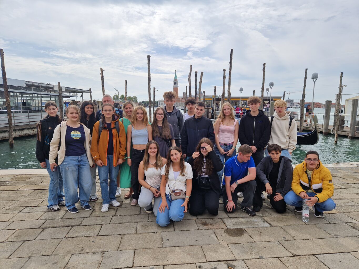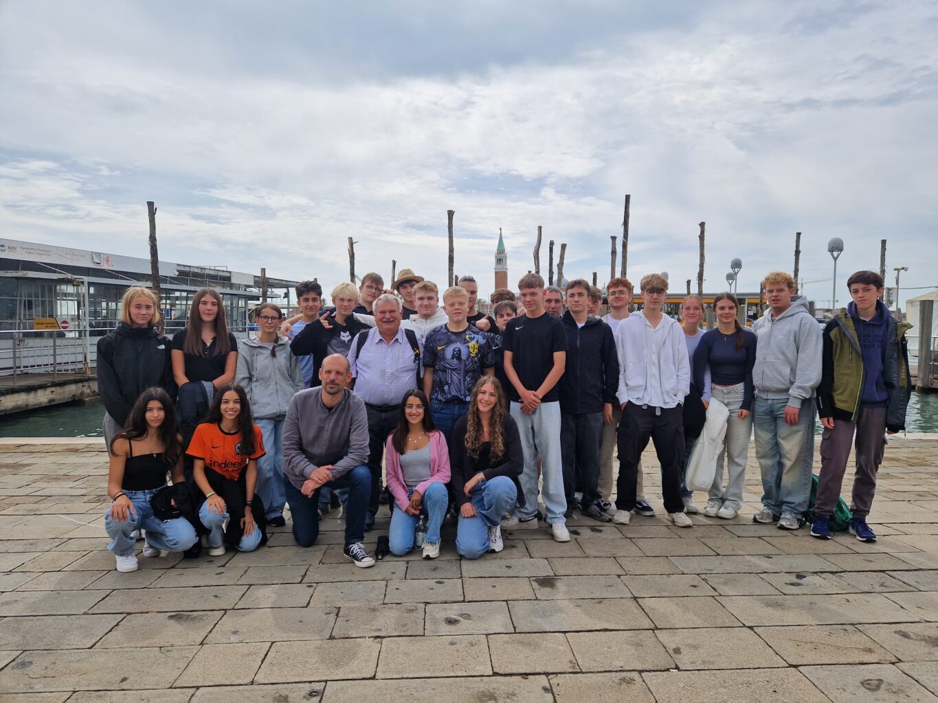 Der Höhepunkt der Ausflüge war bereits am zweiten Tag. Von Punta Sabbioni aus fuhr die Gruppe über die windige Lagune mit einem Schiff nach Venedig. Selbst die Coolsten waren von dem Anblick überwältigt, als die surreale Lagunenstadt immer näher rückte. In Kleingruppen erkundeten Schülerinnen und Schüler die unzähligen Gässchen, Kanäle und Brücken und ließen sich durch das Gewirr der Menschen treiben. Das Wetter hatte ein Einsehen und wir waren bei diesem Ausflug in angenehmstes Sonnenlicht getaucht. Erst bei der Rückfahrt mit dem Schiff drehte das Wetter wieder, was uns nicht daran hinderte, den zwei Geburtstagskindern des Tages ein Ständchen zu singen.