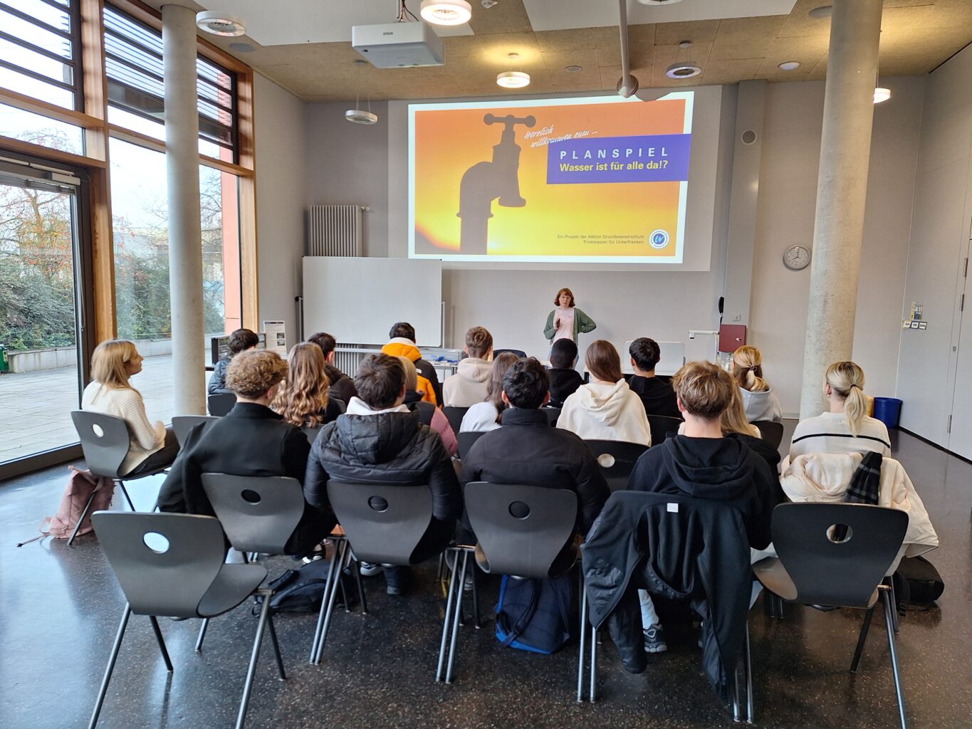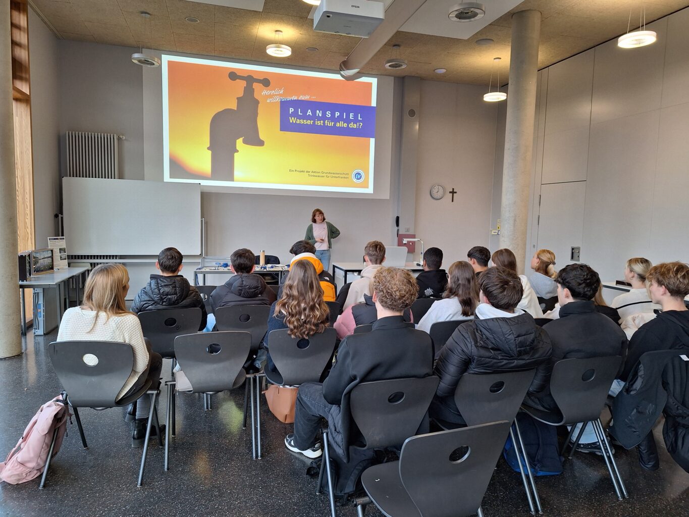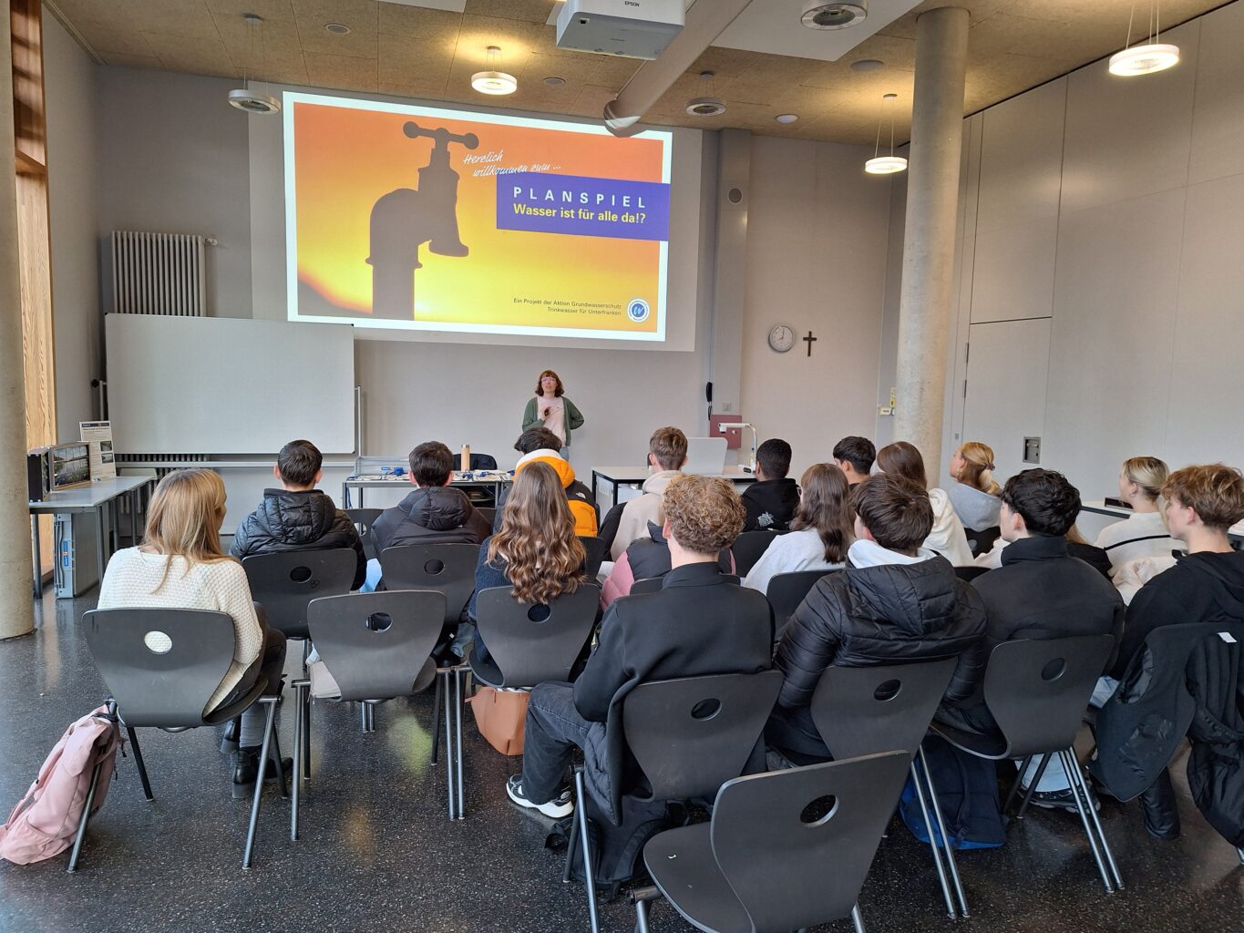 Am 12. November hatte die Klasse 10b einen Tag lang die Gelegenheit das Planspiel Wasser durchzuführen. Hierzu kam eigens Referentin Sabine Michael vom Landesbund für Vogelschutz in die Realschule Elsenfeld, um den Schülerinnen und Schülern die für uns allzu selbstverständliche Ressource des lebenswichtigen Trinkwassers im Rahmen der Aktion Grundwasserschutz nahezubringen. Dabei ging es vor allem auch um dieses im Zuge des Klimawandels immer knapper werdende wichtigste Lebensmittel. Dabei wurde das Planspiel in drei Doppelstunden unterteilt, die verschiedene Schwerpunkte besitzen. Zunächst führte Frau Michael in ein Szenario ein, das immer häufiger auftreten dürfte: Aufgrund des heißen Sommers kämpft eine Gemeinde mit den Folgen der Wasserknappheit, niemand weiß wie lange die drastische Lage noch anhalten wird. Dabei wurden die Schülerinnen und Schüler zunächst mit der Lage vertraut gemacht und schlüpften in die Rollen von sieben unterschiedlichen Interessensgruppen, wie z.B. Gemüsebauer, Naturschützer, Wasserversorger, Papierfabrikant, Gemeinderat, Jugendlicher und Bürger. In der folgenden Doppelstunde erarbeiteten sich die jeweiligen Gruppen an insgesamt acht interaktiven Lernstationen selbstständig Informationen zum Thema Wasser und Klimawandel in Unterfranken und lösten dabei Arbeitsaufträge. In der letzten Doppelstunde fand die Bürgerversammlung statt, die von Frau Michael moderiert wurde und in der alle Gruppen ihre Interessen und Handlungsvorschläge vorstellten. Dabei mussten natürlich Lösungen und Kompromisse gefunden werden, die gesammelt und nach einem Punktesystem bewertet wurden. Die Ergebnisse mit der besten Bewertung überreichte man dann dem Bürgermeister. In einer kurzen Abschlussrunde bewerteten die Schülerinnen und Schüler dann noch selbst das Projekt.