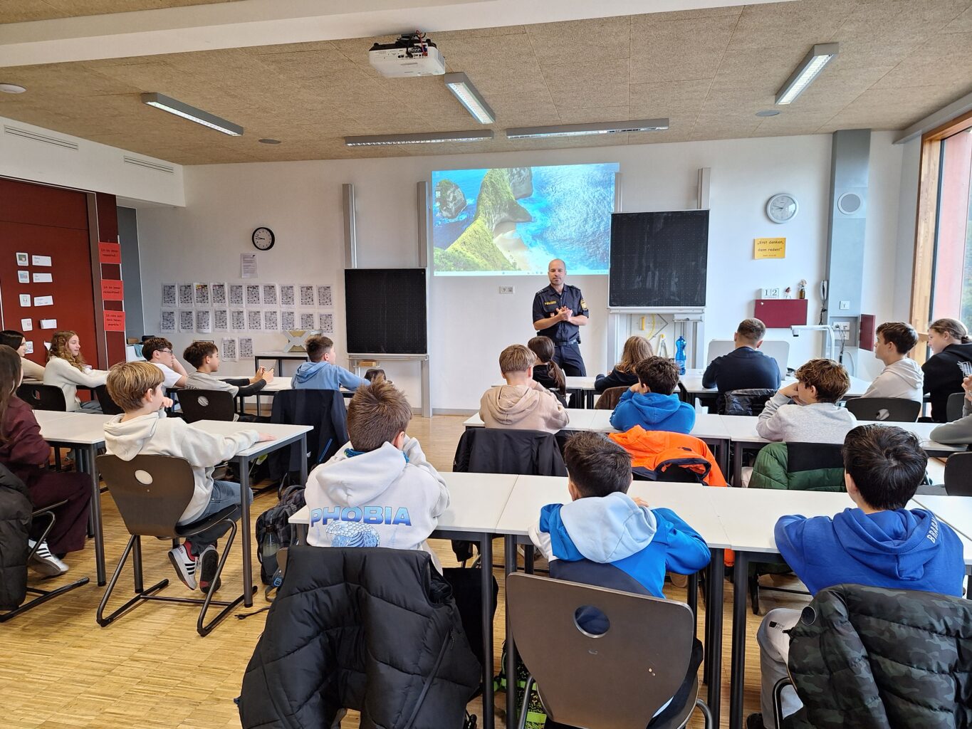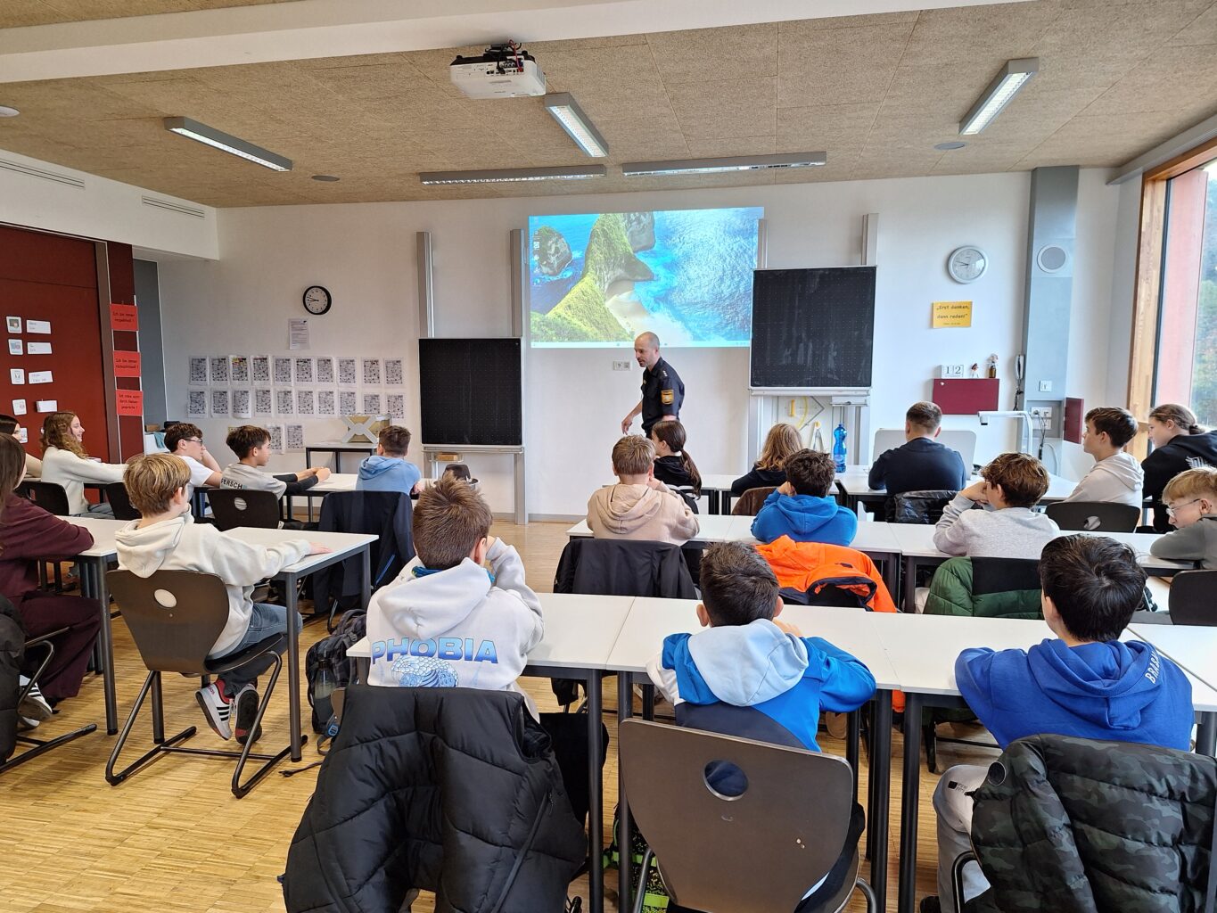 Schulverbindungsbeamter Matthias Fischer von der Polizeiinspektion Obernburg möchte die jungen Menschen darauf aufmerksam machen, wie Delikte des Strafgesetzbuches vermieden und vor allem wie man zur Aufklärung beitragen kann. Themen sind natürlich Drogen, Jugendschutz oder auch körperliche Gewalt, aber im Zentrum steht in erster Linie der Umgang mit dem eigenen Mobiltelefon.