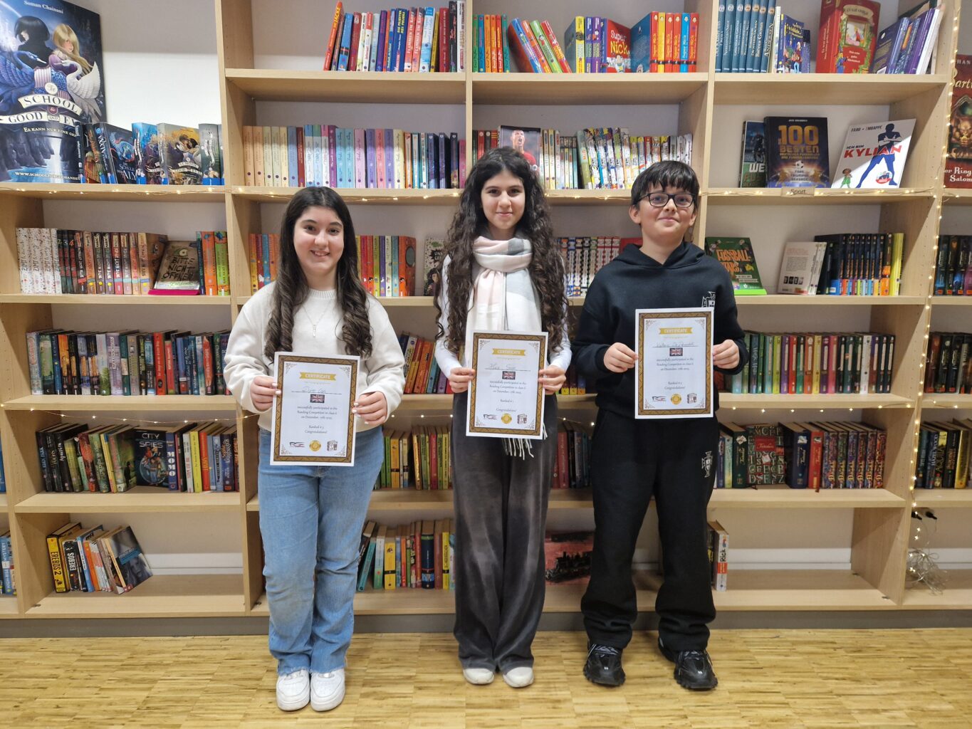 Am Mittwoch, dem 17. Dezember 2025, fand in der Schülerbibliothek der RSE der inzwischen fest etablierte englische Vorlesewettbewerb statt. Die zuvor von ihren Englischlehrkräften ermittelten Klassensiegerinnen und Klassensieger traten gegeneinander an und überzeugten die Jury, bestehend aus Herrn Schäfer, Herrn Schuster, Frau Blank und Frau Becker, mit ihren beeindruckenden Leseleistungen.