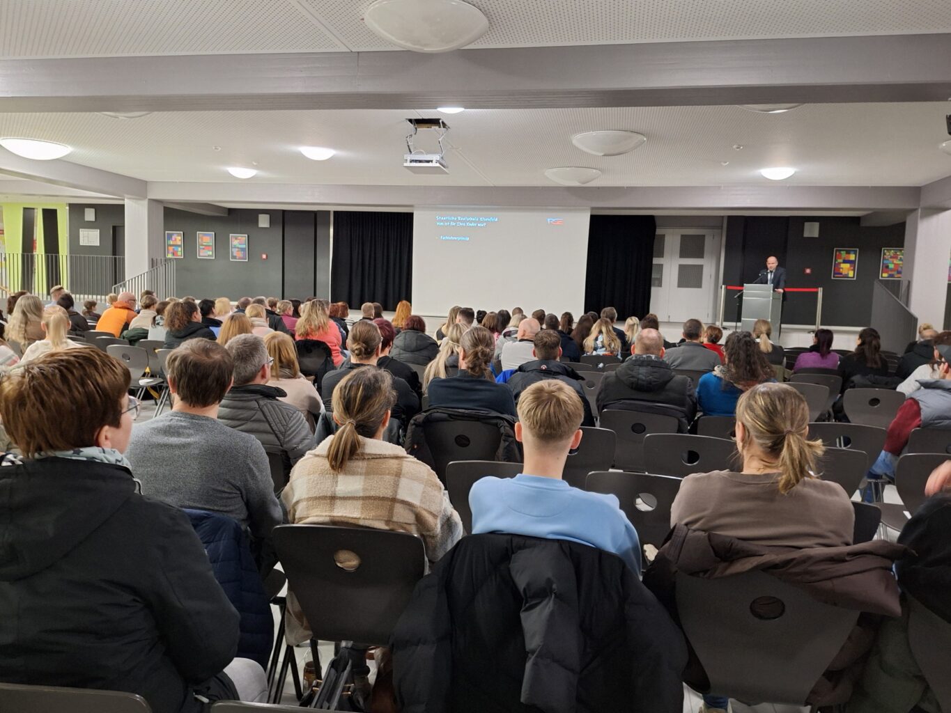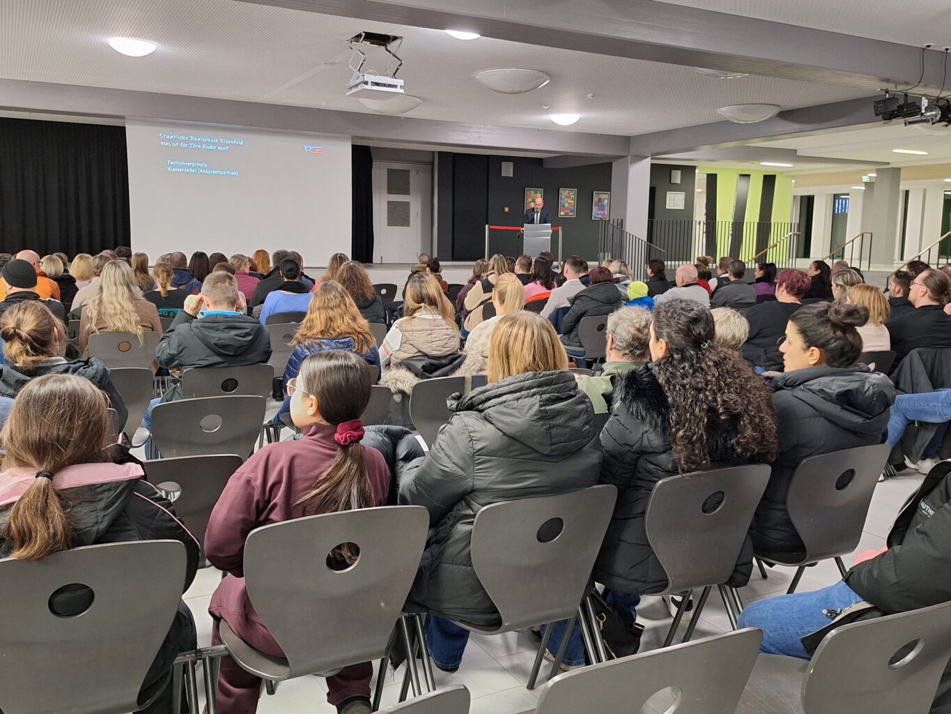 Die Eltern von Grundschülern aus den 4. Klassen waren am Mittwoch, 21. Januar, herzlich eingeladen, sich über die Realschule Elsenfeld zu informieren. Es kamen etwa 170 Interessierte Eltern (aber auch Kinder), was sehr erfreulich ist. Nach einer kurzen Vorstellung der Schule von Schulleiter Matthias Witzel konnten die drei Wahlmöglichkeiten in den 5. Klassen aufgezeigt werden. Denn hier besteht die Möglichkeit zwischen der Sport-, der Forscher- und der Kunst-Chor-Richtung zu wählen. Die Unterschiede sind allerdings minimal, so sind die Stundenpläne der Kinder nahezu gleich, sie haben jedoch im jeweiligen Schwerpunktfach (Sport, Naturwissenschaften oder Musik) jeweils eine Stunde mehr als die Schülerinnen und Schüler in den anderen fünften Klassen. Nach einer knapp 20minütigen Information in der Aula ging es dann in Führungen mit Kleingruppen von etwa 10-15 Eltern durch das Schulhaus der RSE, um erste Eindrücke zu gewinnen. Großes Interesse und viele Informationen gab es und wir freuen uns schon auf Kinder und Eltern am Tag der offenen Tür am Mittwoch, 18. März 2026, mit vielen Vorführungen und Aktionen!