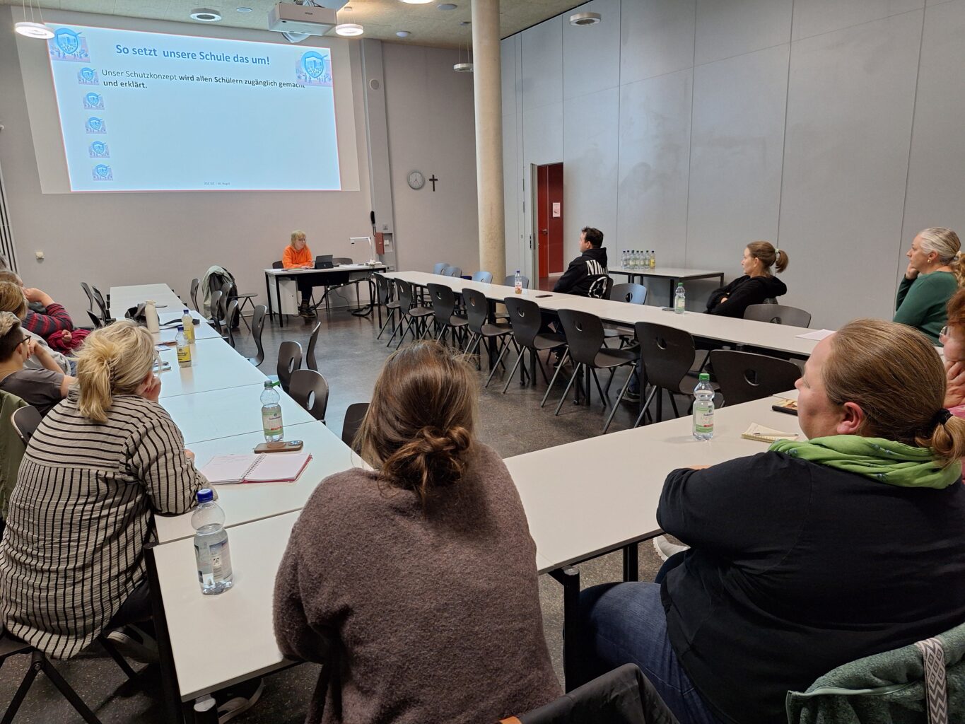 Am 17. März trafen sich 15 Klassenelternsprecherinnen und -sprecher mit dem Elternbeirat sowie der Schulleitung im Mehrzweckraum der RSE. Gleichzeitig konnten sich aber auch 20 Eltern von zu Hause aus online einloggen und sich somit aktiv oder auch als Zuhörer an der „Hybrid“-Veranstaltung beteiligen. Als Referentin war diesmal Frau Martina Vogel, Lehrerin für katholische Religionslehre, am Start. Frau Vogel stellte das in Ausarbeitung befindliche Schutzkonzept der RSE gegen sexualisierte Gewalt vor, das vor allem präventiv angelegt ist, aber eventuell Betroffenen auch Hilfe und Unterstützung geben soll Beim anschließenden Austausch konnten noch Verbesserungsvorschläge seitens der Eltern aufgenommen werden.