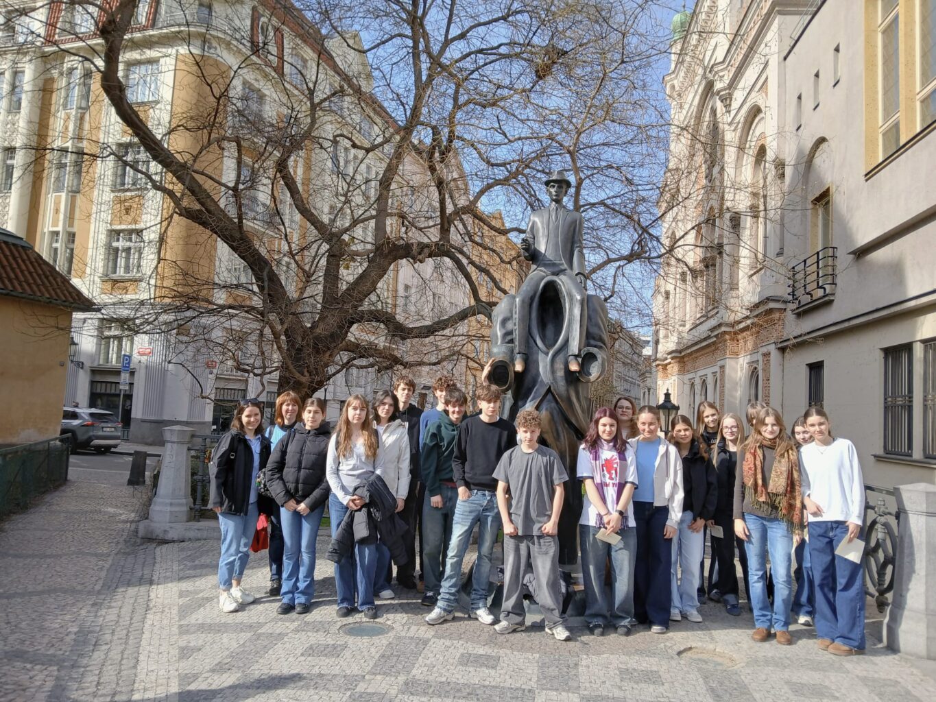 Unter dem Motto „Auf den Spuren Kafkas“ machten wir uns am 23. März mit dem Zug auf den Weg zu unserer Partnerschule, dem Gymnázium Christina Dopplera, in der tschechischen Hauptstadt. Unsere Prager Gastgeber lernen fleißig Deutsch – die perfekte Basis für eine Woche voller Austausch und Begegnung.