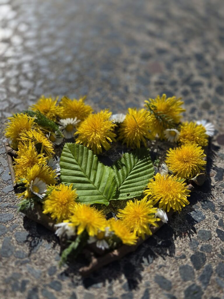 Schülerinnen und Schüler der Klasse 5f hatten bei bestem Wetter die Gelegenheit, ihre Kreativität auszuleben und gestalteten mit Blumen tolle Schmuckstücke, die seinesgleichen suchen. Gibt es denn eine bessere Verwendung für das, was wir als Unkraut bezeichnen? Kunst ist nicht immer nur Malkasten und Pinsel, sondern auch, was wir um uns herum finden.
