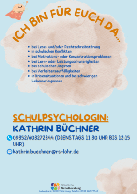 Als Ansprechpartnerin für Schülerinnen und Schüler sowie für Eltern und Erziehungsberechtigte bietet Frau Büchner
